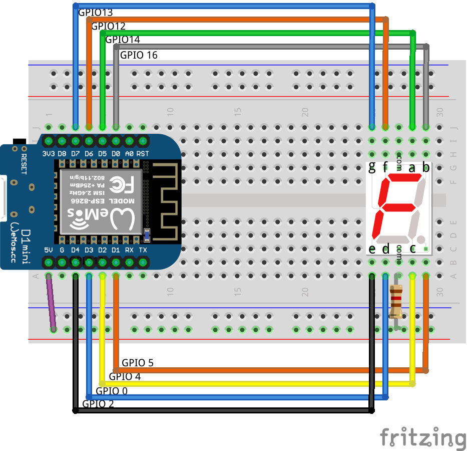 브레드보드에 ESP8266과 7세그먼트를 위 그림처럼 연결해주고